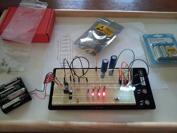Sanity check. 5 Bombillas LED están trabajando en el tablero de pan.