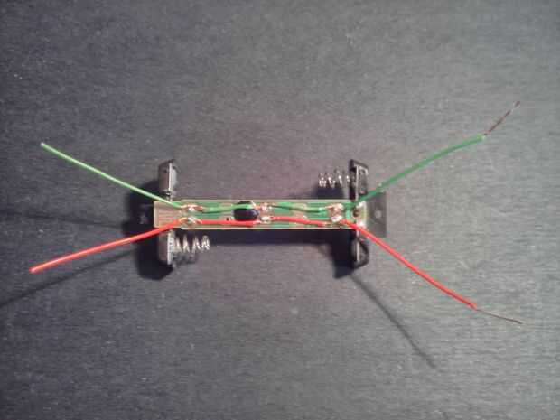 Con la luz, abrir para arriba y se ríen todo un poco hasta que encuentras dos contactos que apague la luz, puede haber un par para cada LED o un par extingue a todos, a cada uno de estos puntos de fijación una longitud de alambre de chatarra y prueba. Con la luz encendida, podrá tocar los cables para encender y apagar.