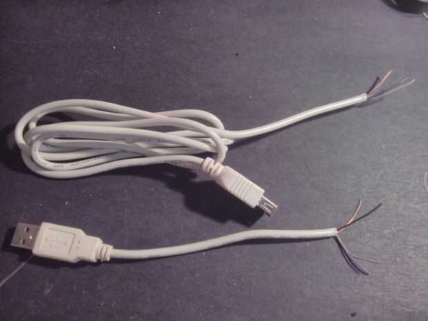 Cortar tu USB cerca de cuatro pulgadas de un extremo (no importa cuál), tira de los cables hacia atrás un poco y usted debe encontrar cuatro alambres separados dentro (puede tener más, sólo tiene cuatro). Con cada pedazo de USB par dos cables para la izquierda y dos para la derecha (ejemplo: rojo y verde = izquierda, blanco y negro = a la derecha).
