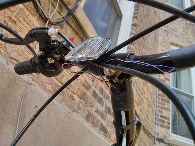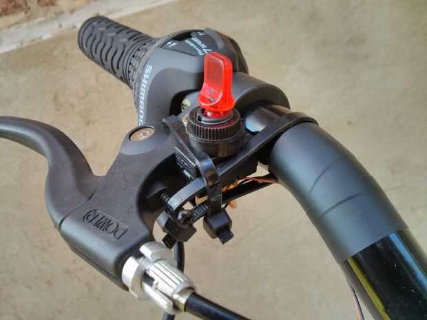 Los interruptores era capaz de cuña en una esquina de las empuñaduras de freno, sujeta con un par de ataduras de cremallera y cinta aislante.