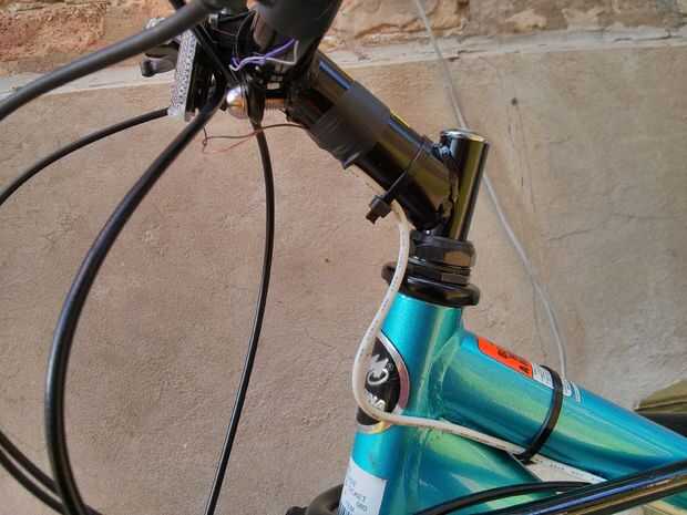 El USB puede fijarse a la estructura de bicicletas con ataduras de cremallera más, dejar unas pulgadas de holgura entre las barras de la manija y el marco y tenga cuidado de no poner cualquier tensión en los cables de freno.