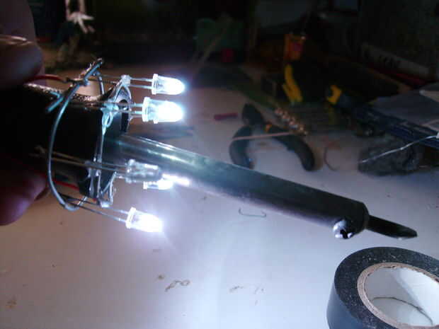 Tengo 6 LEDs blanco brillantes y había pegado en mi soldador. Ahora tengo luz donde yo quiera!