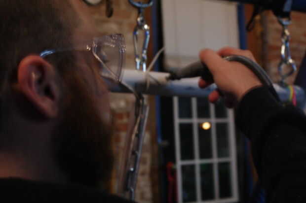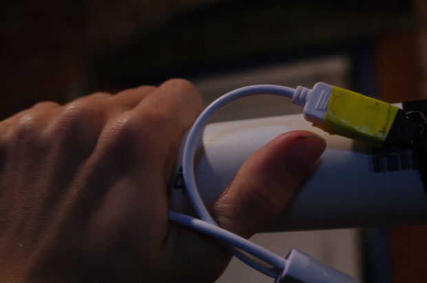 Hemos decidido utilizar una extensión de cable de adaptador de alimentación DC y guardar las piezas de LED en la parte superior del brazo. Esto significa que usando el velcro con la caja de control. Compramos un y-divisor que conectar las 2 tiras de LED para la caja de control para que pudiéramos correr 2 tiras más cortas, uno por cada cadena de swing, en vez de un largo de 5 metros uno. Hasta ahora sólo encontré divisores de LED de 4 pines, lo que significa que sólo puede hacer esto con RGB, no tiras RGBW, a menos que usted mismo haga un divisor de 5 pines (podríamos publicar un instructable en que más adelante como planeamos hacer esto para usar la mejor franja RGBW tenemos).