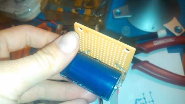Esto definitivamente tiene polaridad así. Generalmente tienen una marca negativa, o las flechas hacia el lado negativo. Usted se colocando y estas patas a los mismos puntos de soldadura esté con el cable de salida en el último paso a. Estos puntos de fijación cada uno tendrá la pierna correcta del rectificador y la pata correcta del cable de salida de la pierna correcta del condensador. Usted probablemente tendrá que doblar las patas del condensador poner horizontalmente sobre una pequeña tabla.