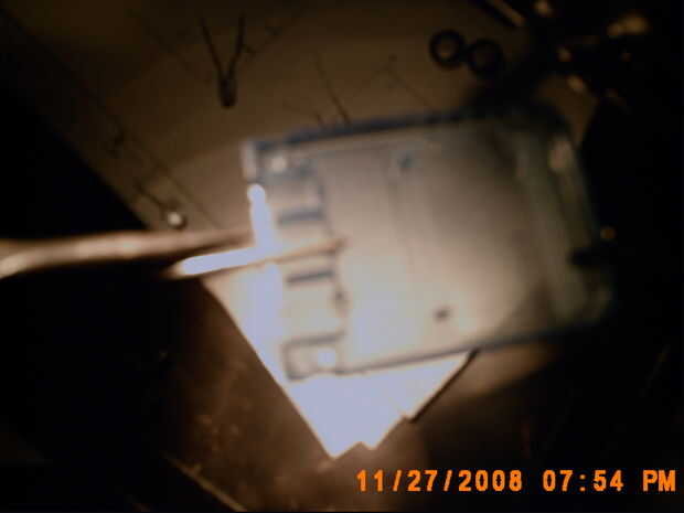 Utilizando un soldador o clavo caliente, derrita un canal para los cables de LED pasar a través de los divisores de los puertos de conector de tarjeta de memoria.