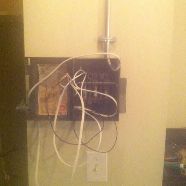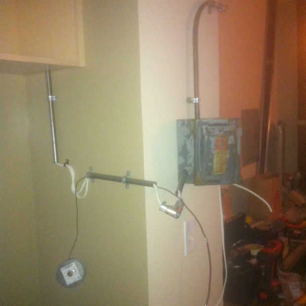 Me gusto cómo miraba la lámpara sola, así que yo intentaría conectar la caja de seguridad. Sólo utilicé cualquier alambre que tenía puesta, probablemente no va a pasar las inspecciones de cualquier edificio.