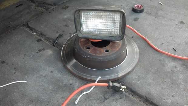 perno entonces tu luz de 12v para el rotor de freno de disco en uno de los agujeros usados para los postes de madera
