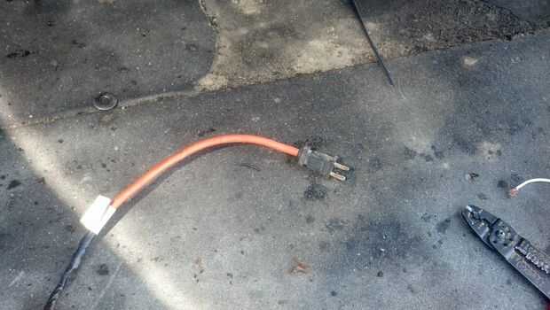 Utilice la hoja de afeitar para pelar los cables naranja (o lo que alguna vez color ext cable tienes) aislante de unos 2-3" desde el extremo cortado