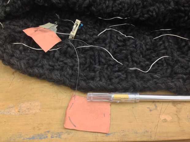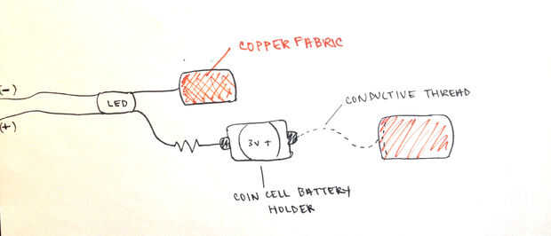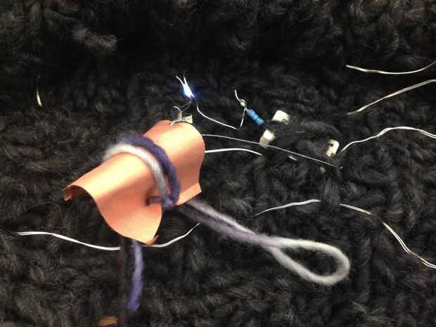 No queremos la bufanda para brillar siempre para salvar a nuestra batería, así que vamos a hacer un interruptor con un hilo conductor y tela de cobre.