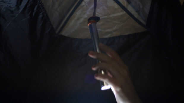 • Ahora estás listo para colgar su antorcha de la parte superior de la tienda. Fácil acceso, fácil de tomar y fácil de reemplazar: Apenas encájese a presión lo encendido y apagado y listo para su próxima aventura!