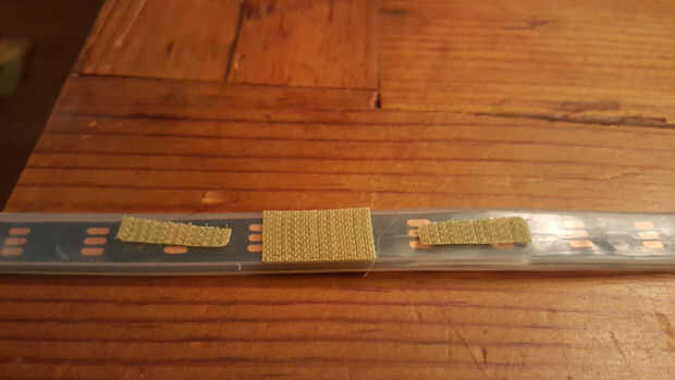 Ahora debe preparar el LED. Quería que la tira del LED para ser fácilmente reemplazable por lo que podría utilizar en otros proyectos o repararlo rápidamente. Para ello he añadido del Velcro en la parte posterior de las tiras y al interior de la caja