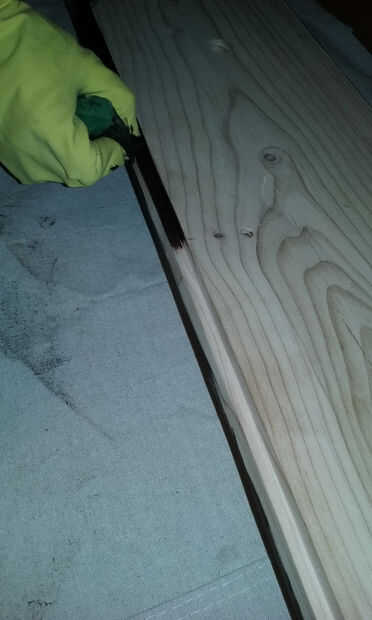 Yo luego lijar el tablero y los surcos había hecho, lo limpiar y teñidas con Productos americanos Gel manchas en color Java. Tres capas de eso y tres de capa clara.