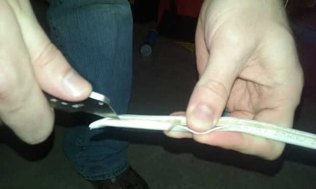 Al aplicar las seis capas a la Junta Directiva, que probablemente tendrá unos días, usar el tiempo para conectar las tomas de luz roscadas. Prueba de ellos! [Si no sabes ya cómo cablearles, obtener ayuda profesional] Empezando por uno de los lados, pase el cable de cada pieza de tubo negro, comenzando con la pieza más cercana a la toma de luz, montar el metal a medida que avanza. El medio será el más difícil debido a la longitud de alambre que se debe ejecutar y el número de vueltas que debe hacerse. Intente mantener el hilo de torsión tanto como sea posible, pero si lo hace, no te preocupes. Lo más importante es no pellizcar o cortar el cable en cualquiera de sus piezas de tubo negro como montar. Esto hará que la lámpara fuera corto y podría ser peligroso.