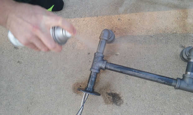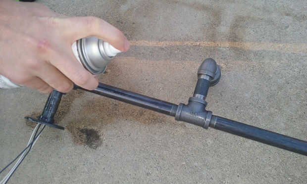 Una vez que todo el metal ha sido ensamblada con tomas de luz, y los cables se están agotando a través de las bridas de piso, utilice un sellador o adhesivo para fijar las tomas de luz en los acopladores de reducción. Una vez que esto ha creado y después de cubrir las tomas de luz con cinta de pintor, uso claro pintura en aerosol para sellar el metal y evitar que se oxiden. Tubo negro será fácilmente moho así que asegúrese de llegar todas las grietas y hendiduras.