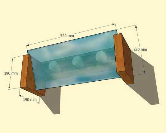Tuve la anterior luminaria desde el baño - era una simple tira de 6 casquillos de bombilla. Fue atado con alambre en dos mitades y se me ocurrió que si lo corte por la mitad, tendría dos luminarias de 3. Si oculto atrás un pedazo de vidrio esmerilado montado en unos soportes de madera que sobresale de la pared, tengo una buena luminaria contemporánea. Yo jugaba con Sketchup hasta que algo me ha gustado (archivo .skp adjunto al final de esta etapa) que también sería fácil de hacer y montar. Todo lo que necesitaba era un par de recortes de madera de construcción y unos trocitos de madera, además de la conexión que tenía. Tengo que hacerme algunos cristal cortado para caber, pero esta no era es gran cosa.