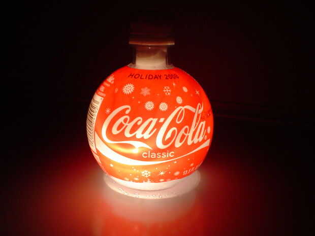 decidí hacer una lamparita de LED de una botella de coca cola redonda. Tenía esta idea antes de que vi el instructable de lambsb, pero me di cuenta de utiliza una bombilla de linterna en lugar de un LED, así que pensé que iría adelante con esto.Pas