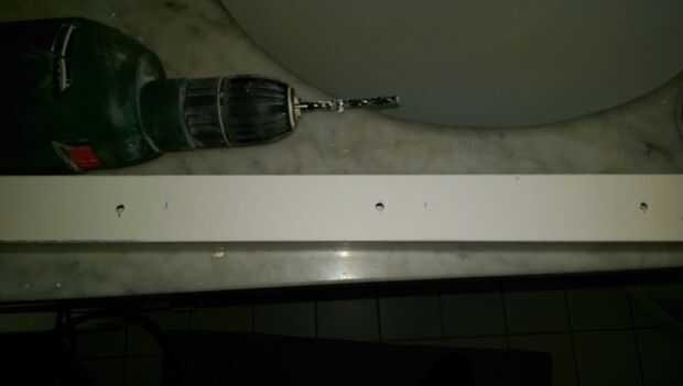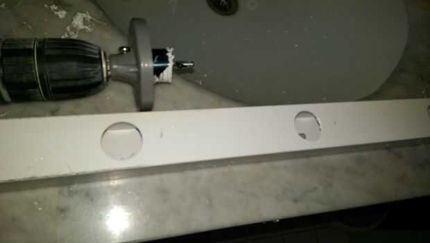 Después de las mediciones taladré agujeros pequeños a la tapa de pato de alambre PVC para marcar para más precisión de la perforación con broca de 26mm.