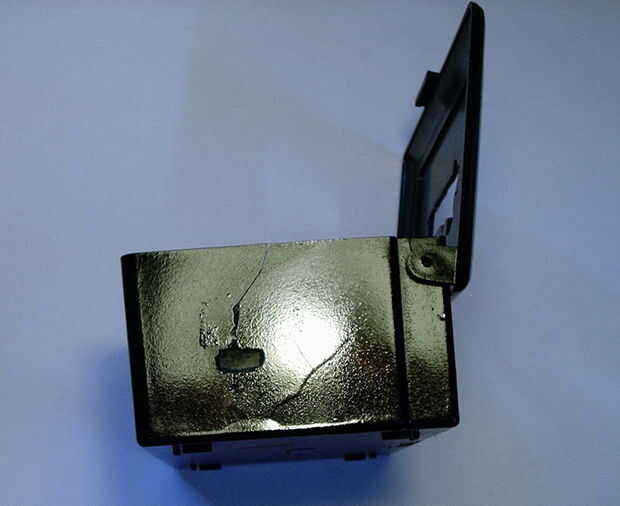 Entonces cometí un error, me olvidé de hacer un agujero en el lado del recipiente para el interruptor después de que había rociado el contenedor negro. Así que hacer un agujero para el interruptor y resprayed el envase entero otra vez porque salió poco de pintura.