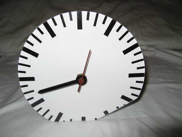 El reloj tiene marcas durante horas, horas de cuarto y mitad de las horas, así que como veis en la foto el tiempo es aproximadamente 8:25.
