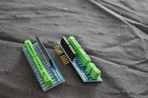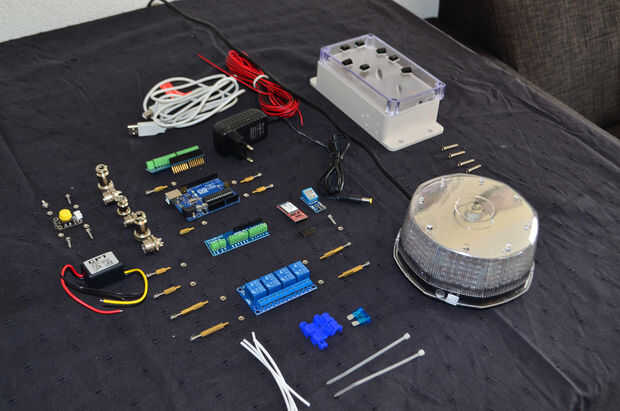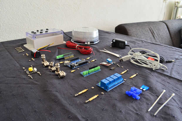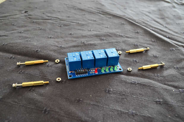 Estamos utilizando un relais de 4 canales. En el ejemplo sólo hay dos canales. Uno para la energía, en segundo lugar para cambiar el modo parpadeo del LED. Los otros dos canales son opcionales. En mi ejemplo yo don´t usar los dos canales pero he conectado a la caja de enchufe de 5 pernos tornillo tipo aviación eléctrica.