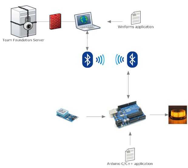 El DHT11 es un básico, ultra bajo costo sensor digital con temperatura y humedad. Utiliza un sensor de humedad capacitivo y un termistor para medir el aire circundante y escupe una señal digital en el pin de datos (sin pines de entrada analógicas es necesitadas). La información es leída por el Arduino y enviar al equipo cliente.