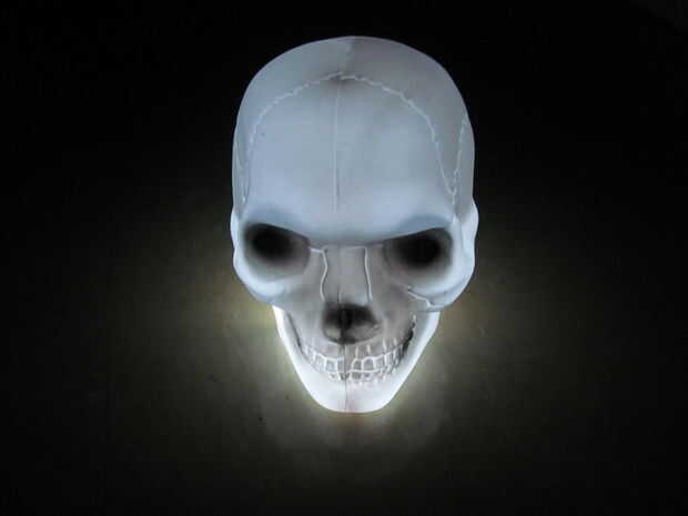 yo estaba vagando por el almacén del dólar intentando encontrar cool decoraciones de último minuto para Halloween cuando vi un cráneo plástico fresco. Como salí del pasillo de Halloween vi un montón de baratos faros y linternas. De repente, tuve una idea; Miré hacia abajo en el cráneo y vio lo bien deje que la luz brille a través de él. Se precipitó sobre las luces y me agarró el proyector más compacto con una opción intermitente había. Después de que pasó un total de $4,00 y 20 minutos de mi tiempo había creado un barato, fácil de hacer cráneo de estroboscopio.