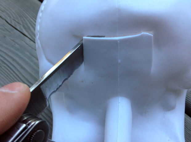 -Cortar una pequeña aleta en la parte posterior del cráneo sólo lo suficientemente grande como para caber el circuito a través de. -Dé vuelta al circuito a la velocidad de la luz estroboscópica deseada (o dejarlo en una luz continua, parece demasiado cool) y empujar a través de la aleta.
