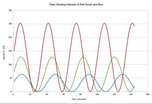 Los LEDs RGB dan diferentes intensidades de rojo, verde y azul, he reducido la amplitud y el desplazamiento.