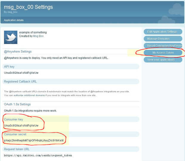 Segunda página: Aquí es donde encontrará su clave de consumo y su secreto de consumidor