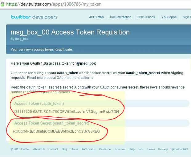 ¿Qué es aún? Relajarse. Piénsenlo de esta manera: usted está creando un conjunto de nombres de usuario de alta tecnología especial y las contraseñas para las cosas que hacer pueden acceder a Twitter. Es como Twitter es este gran castillo con un front door para todos los huéspedes humanos y una puerta trasera para todo el personal de servicio automatizado. Estos nombres de usuario de alta tecnología y las contraseñas se llaman OAuth. OAuth permite su acceso dispositivo Twitter a través de la entrada de servicio.