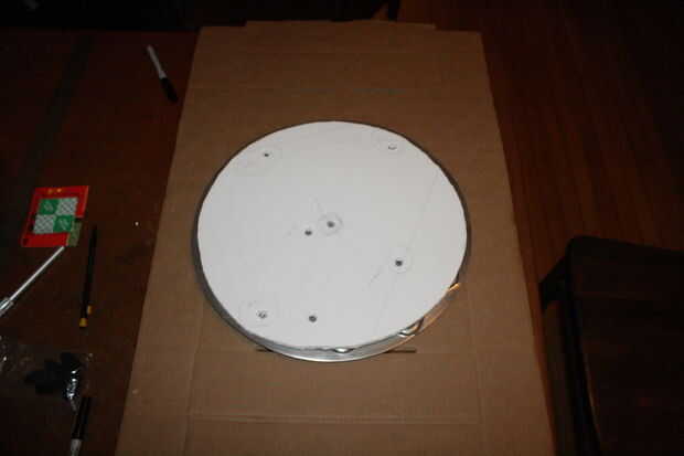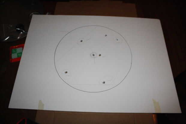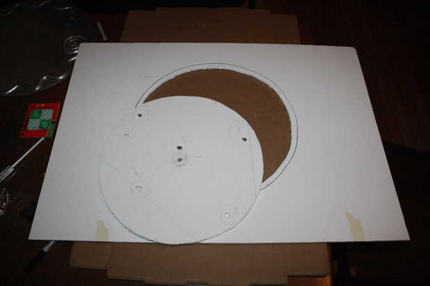 Una vez tengas el diseño terminado, recorte el círculo y utilizarlo como una máscara sobre la placa para posicionar los agujeros. Cuando usted corta el círculo hacen unas pocas pulgadas más pequeña que la placa (véase los cuadros). Esto le permite volver a utilizar el tablero de la espuma para el cableado.