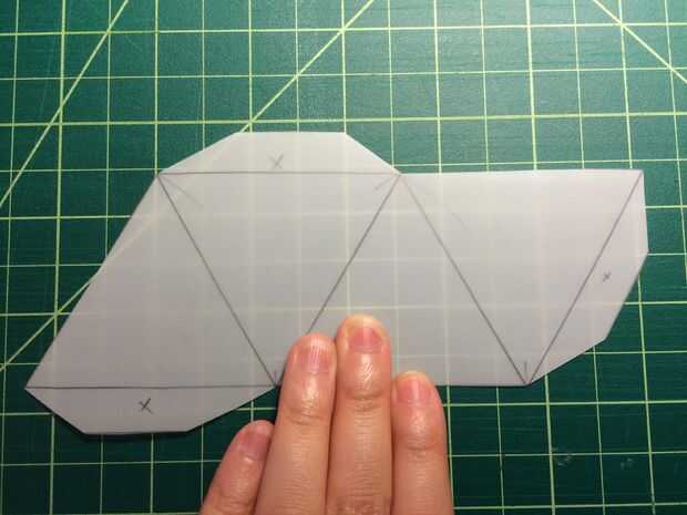 Cortar los plásticos en la forma como la imagen. El ancho del triángulo es de 3.5 pulgadas. Puede ajustar el tamaño, pero asegúrese de que no es demasiado pequeño para todo el circuito. Los plásticos pueden ser un poco difíciles trabajar con. Asegúrese de que utilizar un hueso plegable para anotar antes de empezar a doblar.