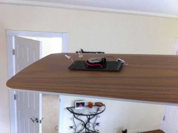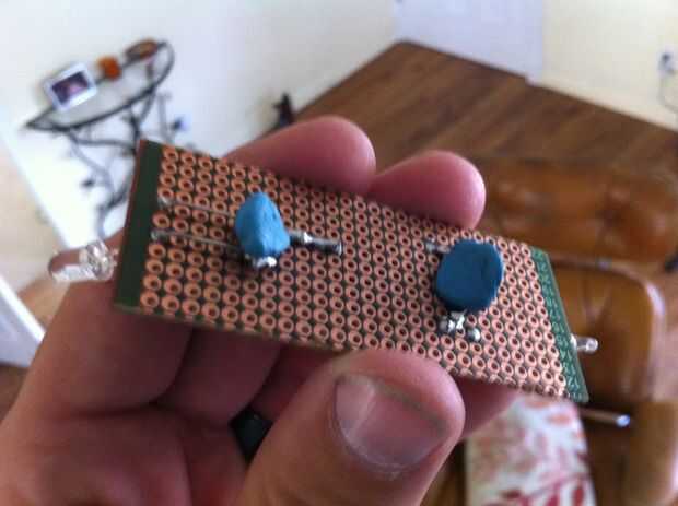 Ahora que tienes el circuito todo configurado, está listo para conectar al ventilador. Usé "Tachuela pegajosa", que marca un barro pegajoso azul que le permite fácilmente y fácilmente quitar elementos sin dejar ninguna perminant. Usted puede adjuntar quieras, sólo asegúrate de que tienes el interruptor del mercurio hacia el centro del ventilador para que cuando se convierte en el mercurio se enciende las luces!