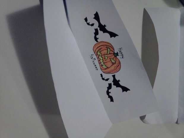 Imprimir tu obra de arte y doblar por mitad del camino largo con su arte en el interior del doblez.