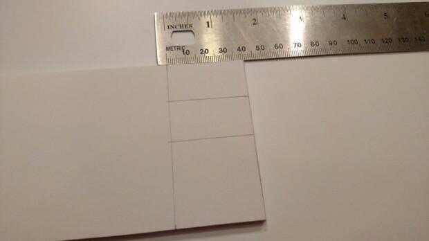 1. Medir un rectángulo de 40 x 80 mm, y luego medir secciones dos de 40 x 20mm dentro de la longitud de 80mm.