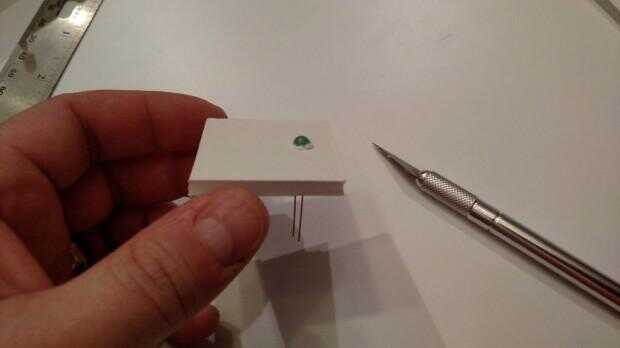 2. Colocar el LED en el agujero y recorte cualquier trozos restantes de todo el LED.