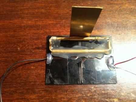 5. a continuación hice una bisagra y brazo con alguna tubería de cobre que tenía ahí. Revisa las imágenes de cómo lo hice. Una vez que se ha hecho, caliente pegué a esa madre para el panel solar.