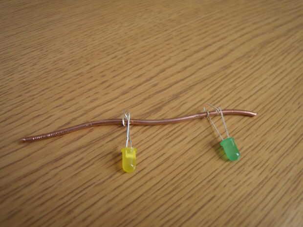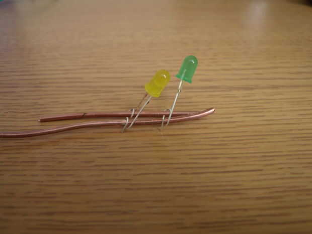Coloque los lados positivos de los LEDs alrededor del alambre más largo.