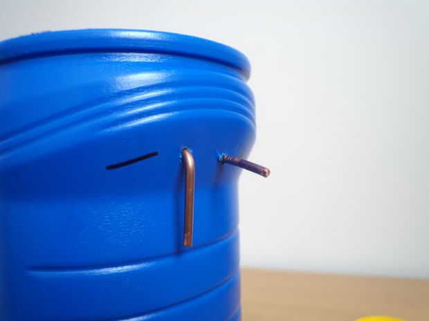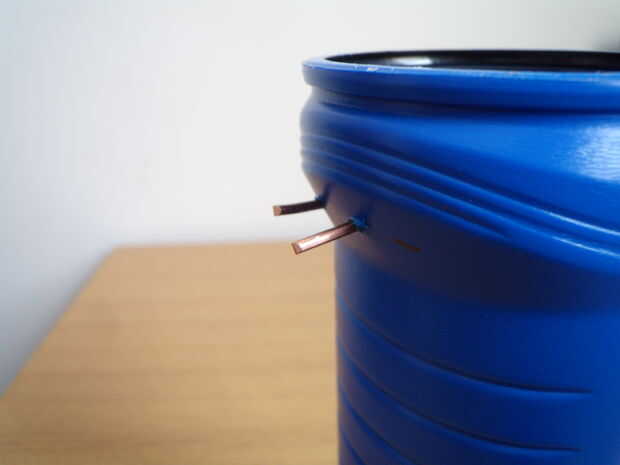 Conseguirlo los pedazos para caber en el contenedor. Un cable debe pasar por ambos lados, mientras que el otro sólo debe pasar por un lado.
