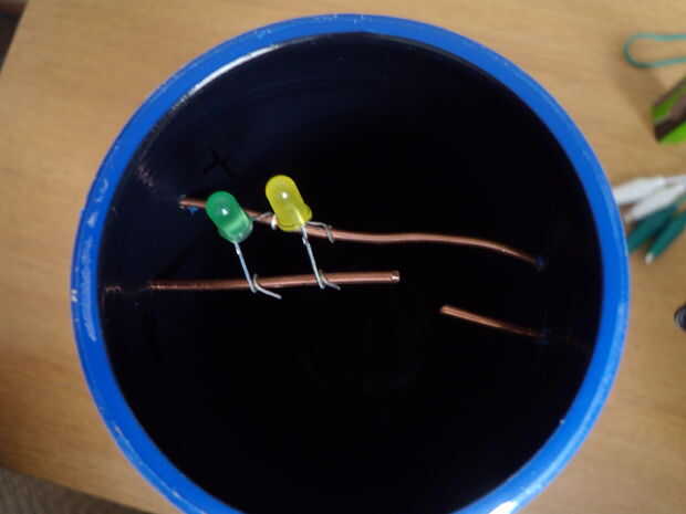 Coloque los lados negativos de los LEDs alrededor del alambre más próximo.