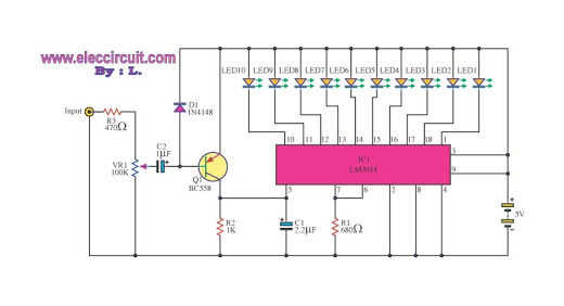 LM 3914 ecualizador C.I se utiliza aquí para hace el circuito.