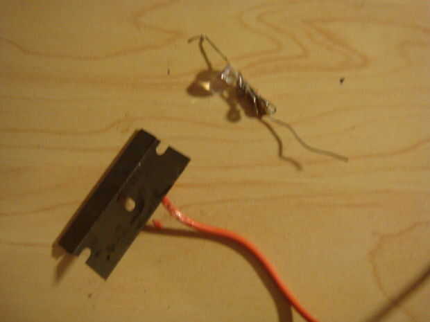 3. cortar un poco de la capa del alambre donde quieres poner el LED, no tienen que ser el mismo punto para ambos + y -. los conductores en su LED pueden ser diferentes longitudes.