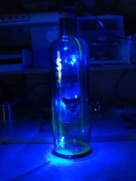 y poner la hebra en la botella.