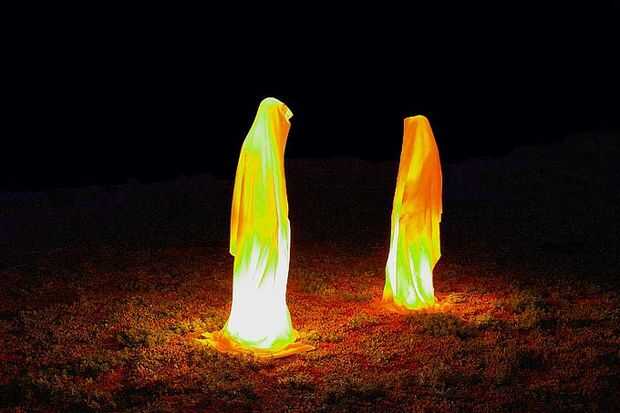 He aquí envueltos figuras permanente velar por todos nosotros, cada uno de ellos cubierto de luz en todos los lugares oscuros y claros. Se trata de un conjunto de esculturas llamados protectores de la luz, diseñado y ejecutado por el diseñador / artista Manfred Kielnhofer. Cada uno de ellos es una escultura de la lámpara, tela sobre una forma invisible de humanos. Cada uno de ellos es también poliéster combinado con lámparas de energía sensible que brilla intensamente en 32 W cada uno.