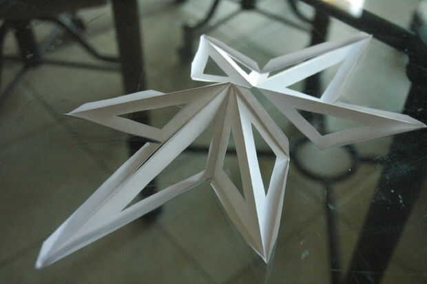 Una vez que han cortado todas las piezas, doble las secciones a lo largo de las líneas restantes. Esto le dará cuatro formas que se asemejan a piezas de la estrella.