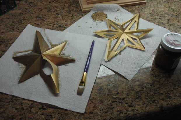 Usar oro, plata o cobre metálico pintura para el frente y atrás de su estrella. Déjelo secar.