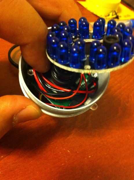 Después de soldar los cables en su lugar, compruebe que el LED funciona como estaba previsto, entonces es tiempo de reemplazar todas las piezas de nuevo dentro de la vivienda. Asegúrese de que la cámara esté colocado correctamente para que no obtenga un imagen una vez conectado al revés. Pongo algunos silicona alrededor de la LED para fijarla y hacer un agua apretado del sello.