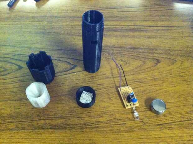 Si has estado buscando un gran proyecto para que niños involucrados e interesados en la electrónica, no busque más! Construir una simple 3D impresa luz del flash utilizando piezas de electrónica bastante estándar para barato. Cuesta alrededor $4 para el filamento de la impresora y toda la electrónica.