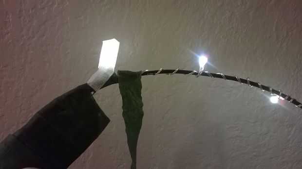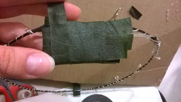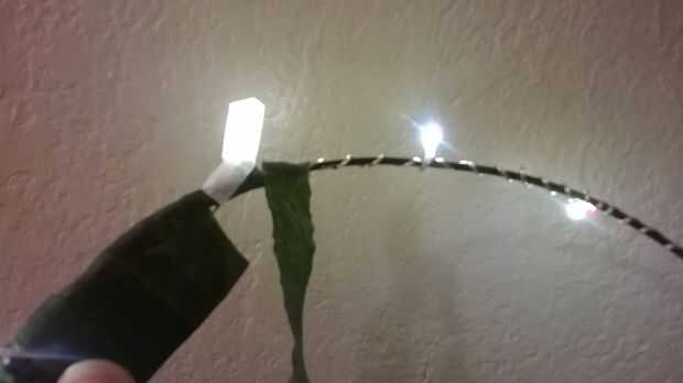Envuelva los LEDs con cinta floral blanco para dar los LED una luz más difusa. Luego, envolver el resto del proyecto con cinta floral verde.