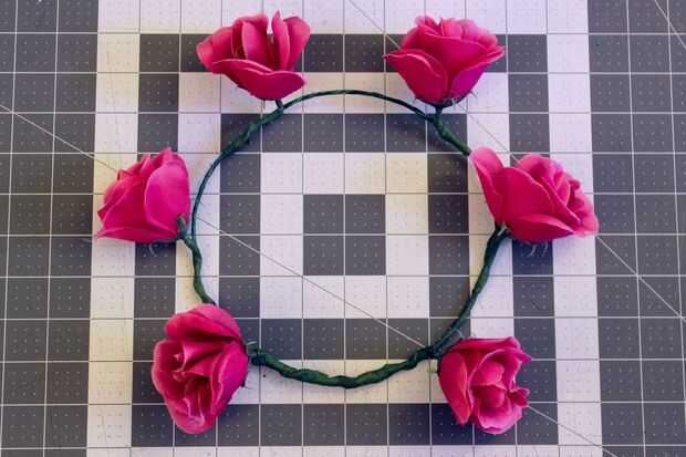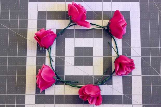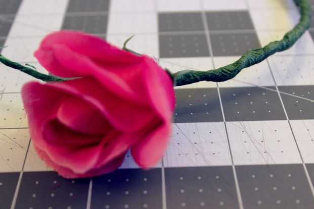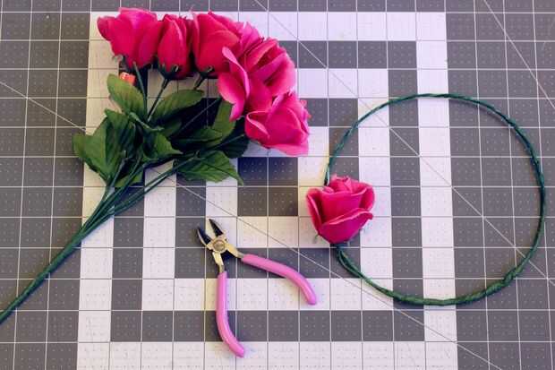 Para agregar las flores solo quiero corte del racimo con cortadores de alambre. He dejado unos 2-3 pulgadas del tallo sobre tuve espacio para girar a la corona.